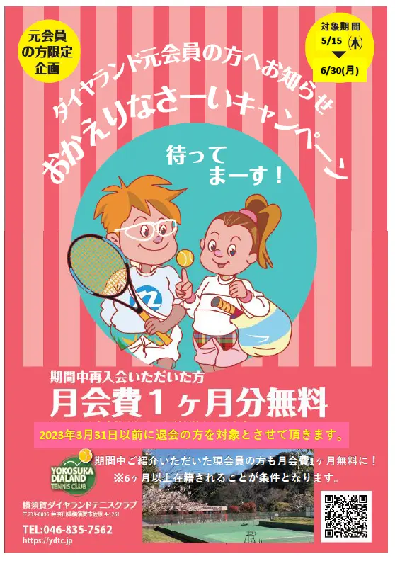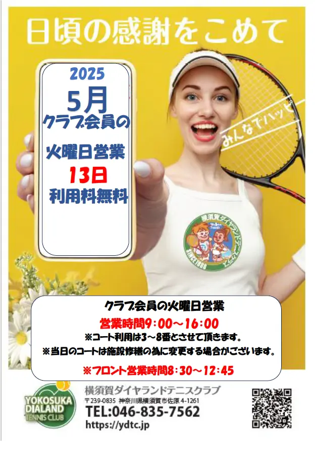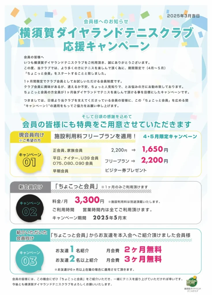 ※クラブ・コーチの都合により会員レッスンを変更または中止する場合がございます。